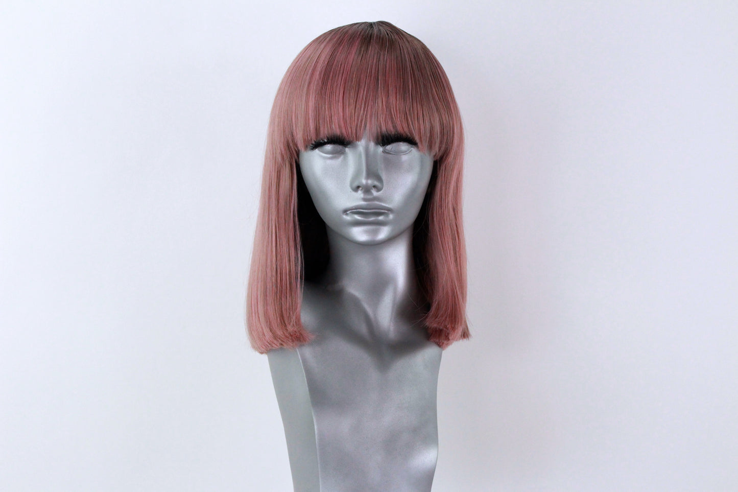 She is a non lacefront wig with a blunt cut fringe and a skin top parting at the crown for a more realistic looking part.