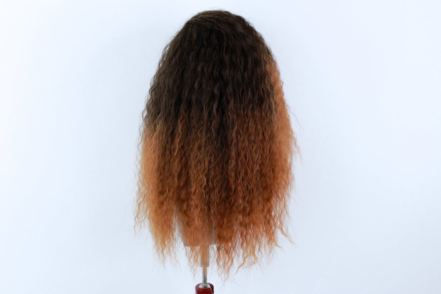 She is made from a high quality heat safe synthetic fibre meaning you can use heat tools up to 170c degrees to curl or straighten her.