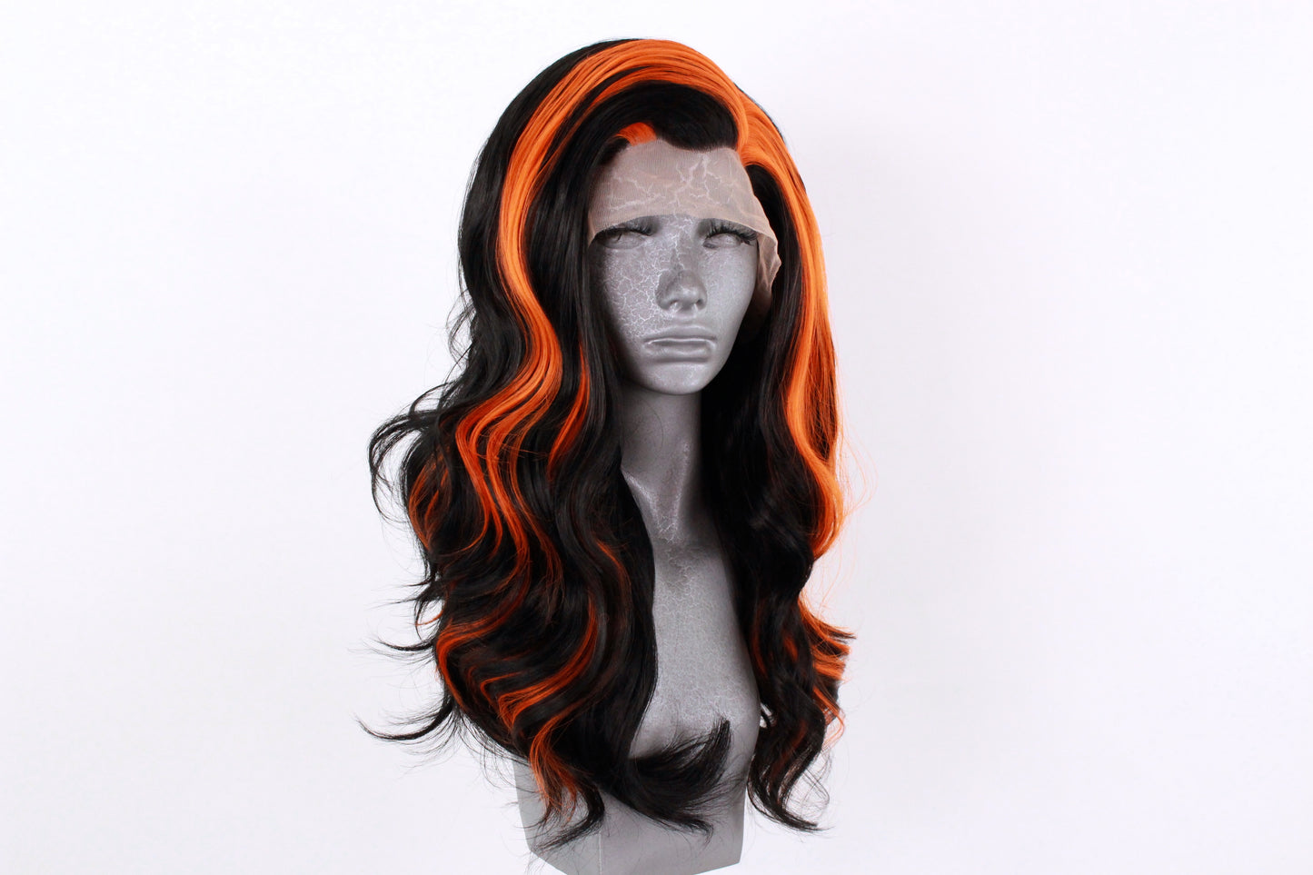 The colour is - Pure Black With 4 UV Orange Streaks in the Lace Front Area
