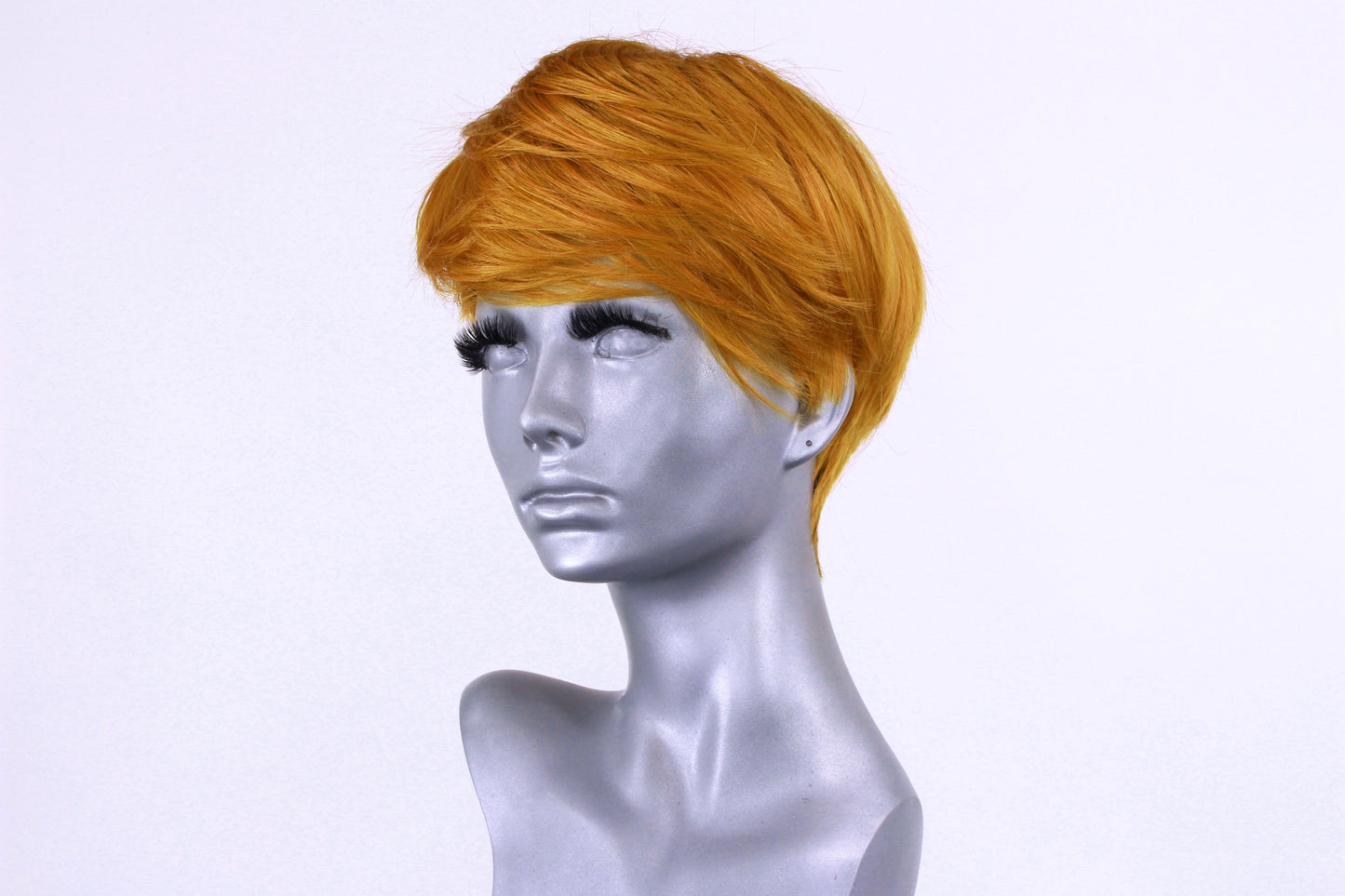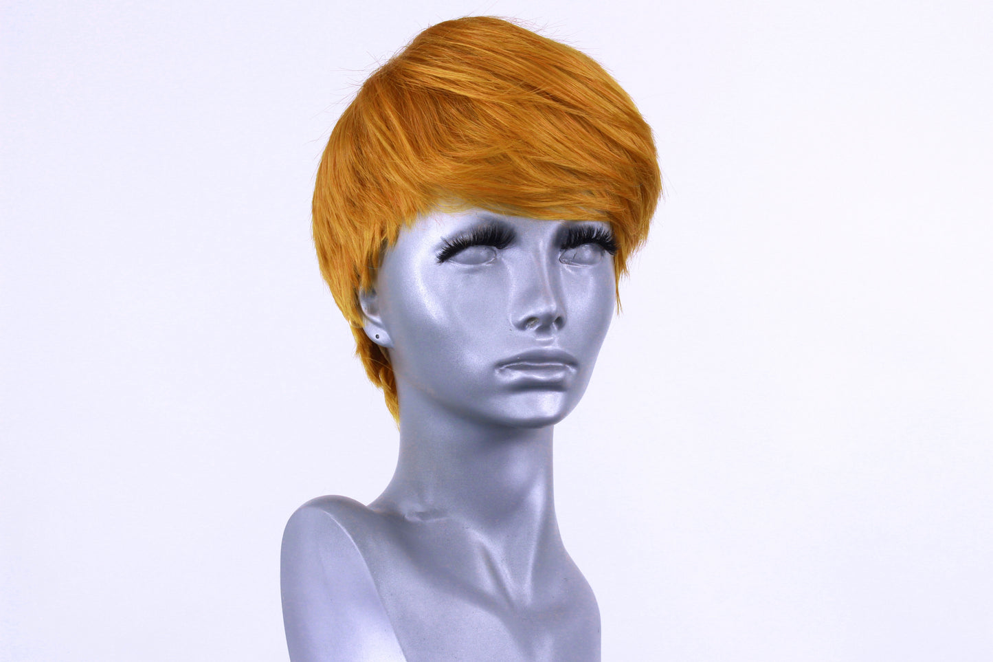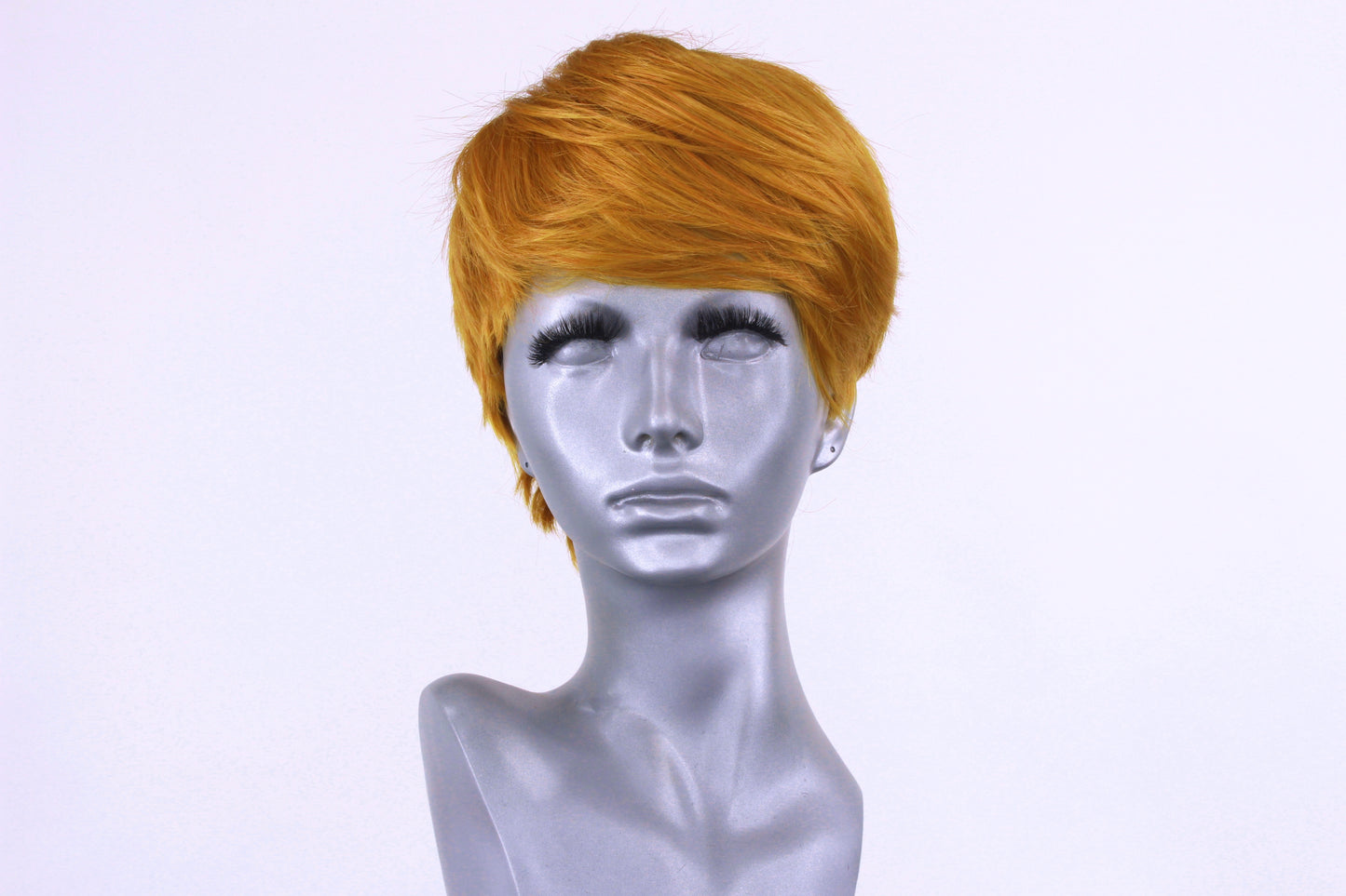 Please note, due to the short length of this style, the wig pictured is not exactly how you will receive it, as brushing and styling the wig will be required. To get the look as pictured, we gently shook the wig upside down, placed it on a wig head and used a wide tooth comb and hairspray to style as desired.