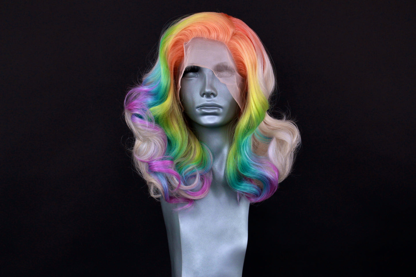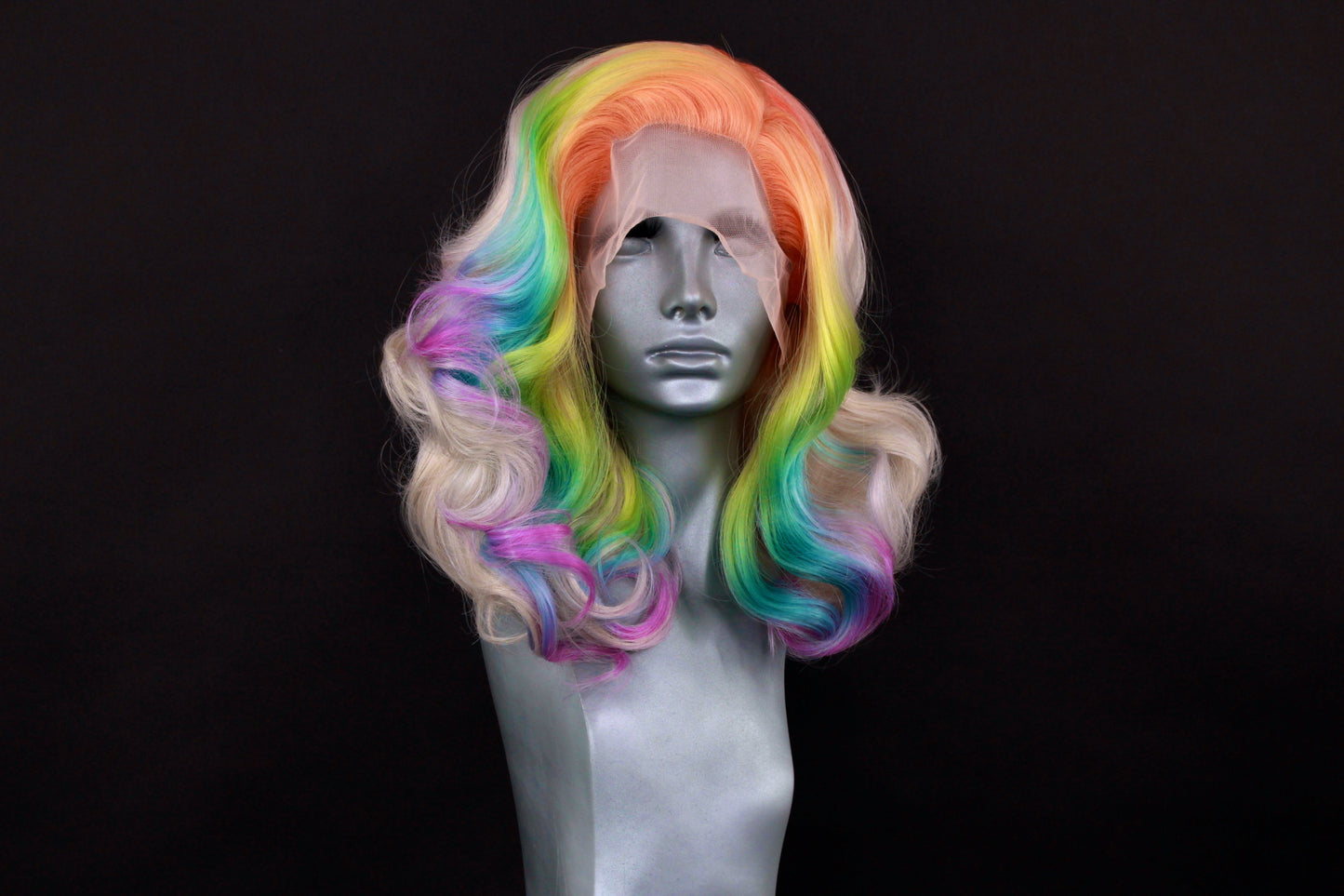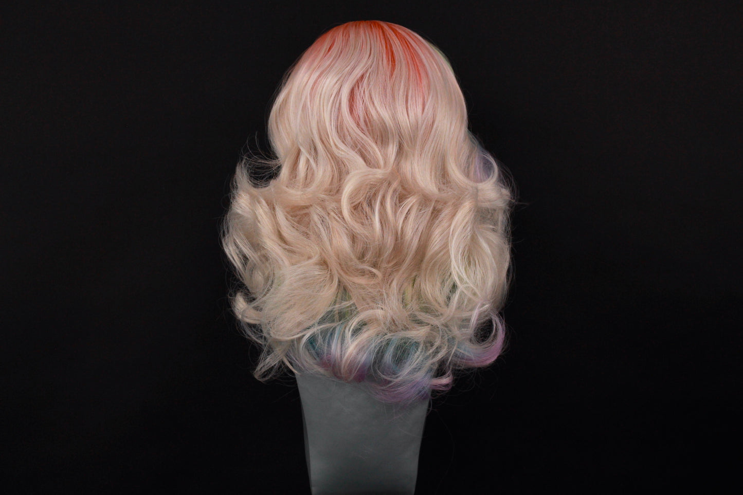 The colour is - A Pearlescent Blonde with a Rainbow Ombré front edge