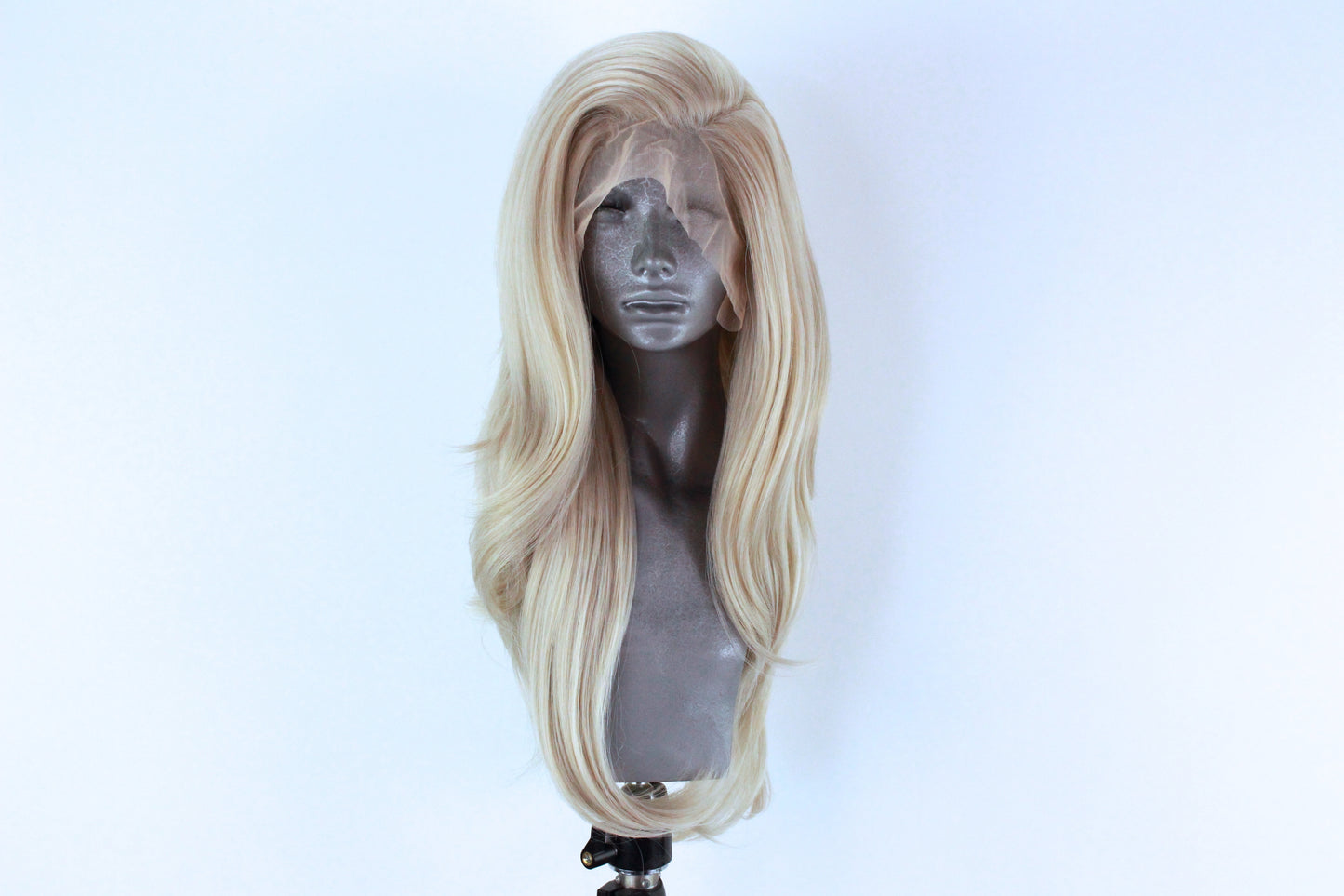 She also has a 4.5 inch deep parting space, giving you a free choice of parting anywhere across the front of the wig, on a soft light coloured invisible Swiss lace front.