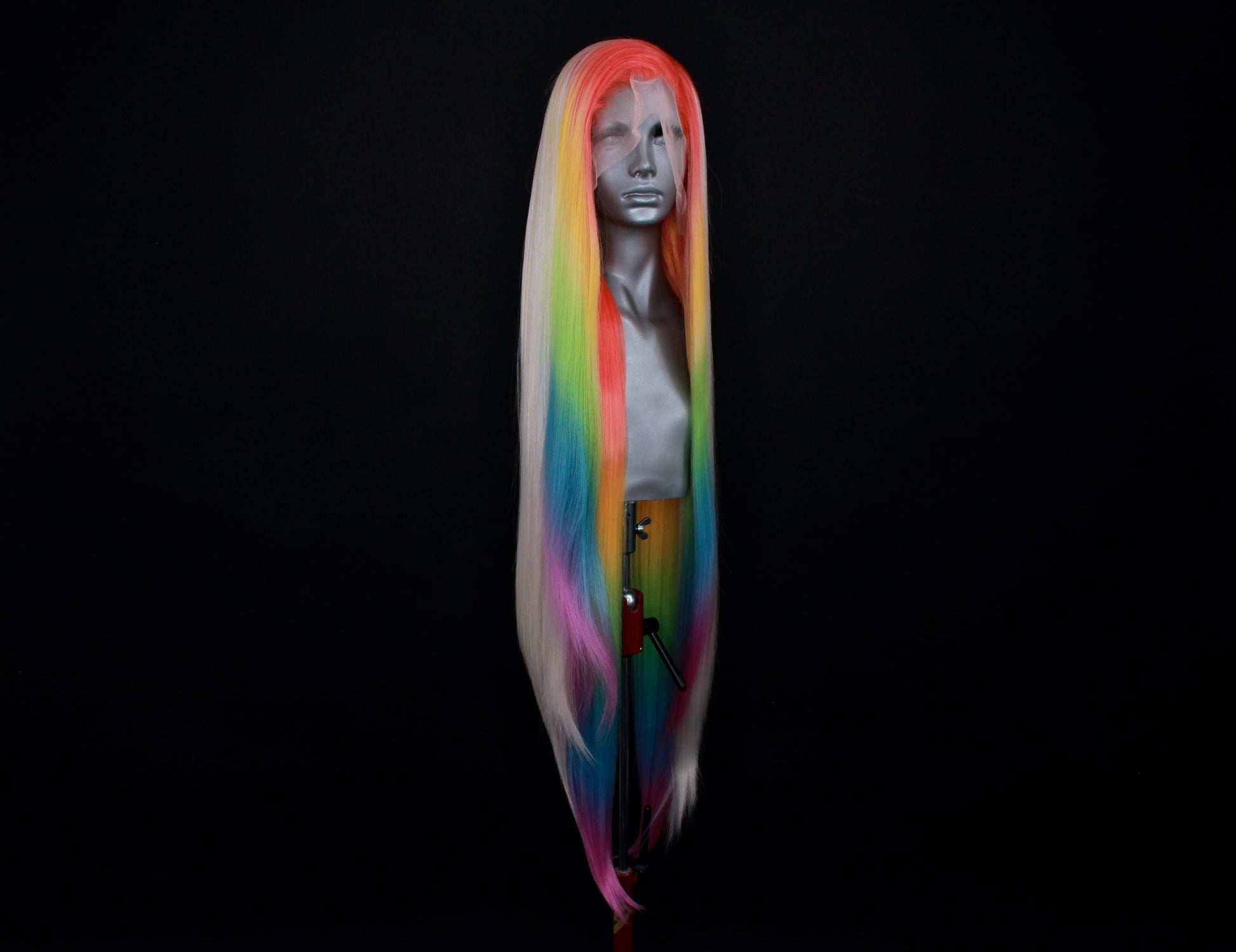 The colour is - A Pearlescent Blonde base with a Rainbow ombré front edge
