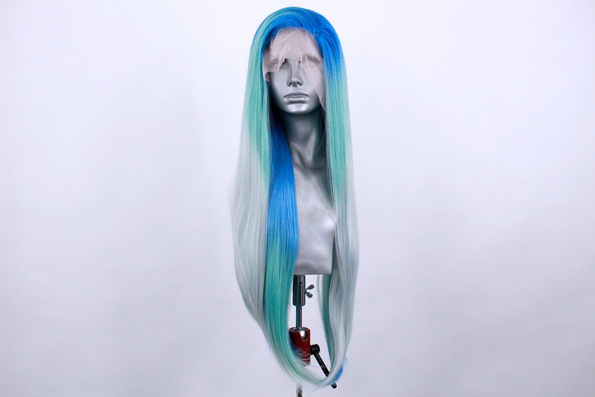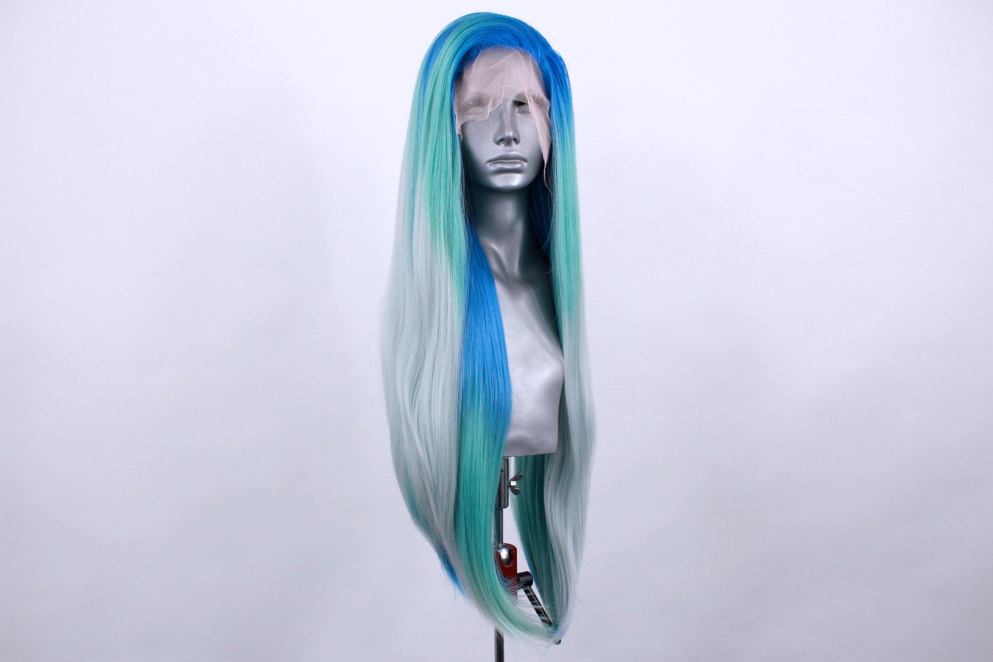 The colour is - Deep Blue Roots into Teal Green and Icy Blue ombré with Teal Green and Deep Blue Tips
