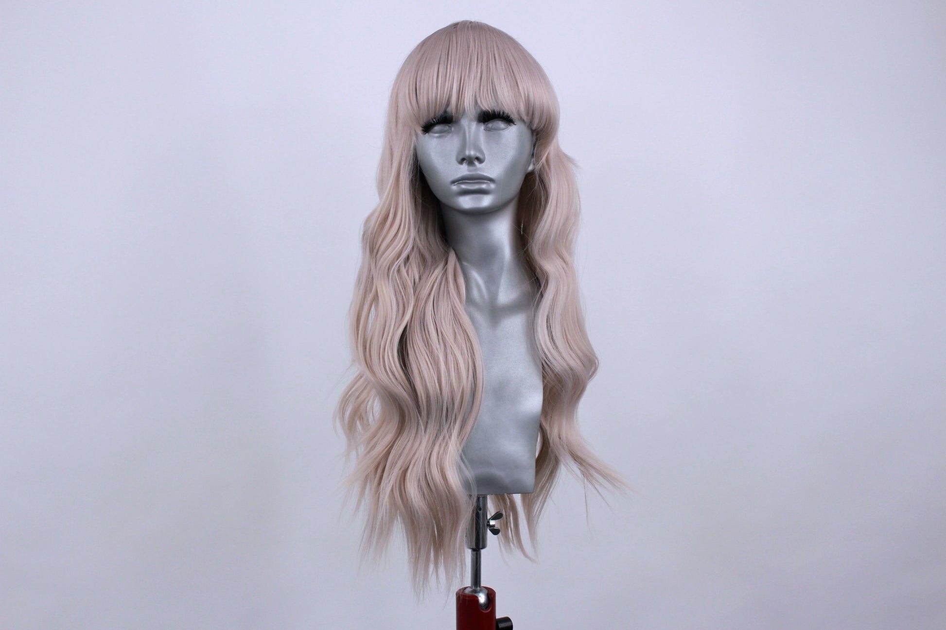 She is a non lacefront wig with a blunt cut fringe and a skin top parting at the crown for a more realistic looking part.