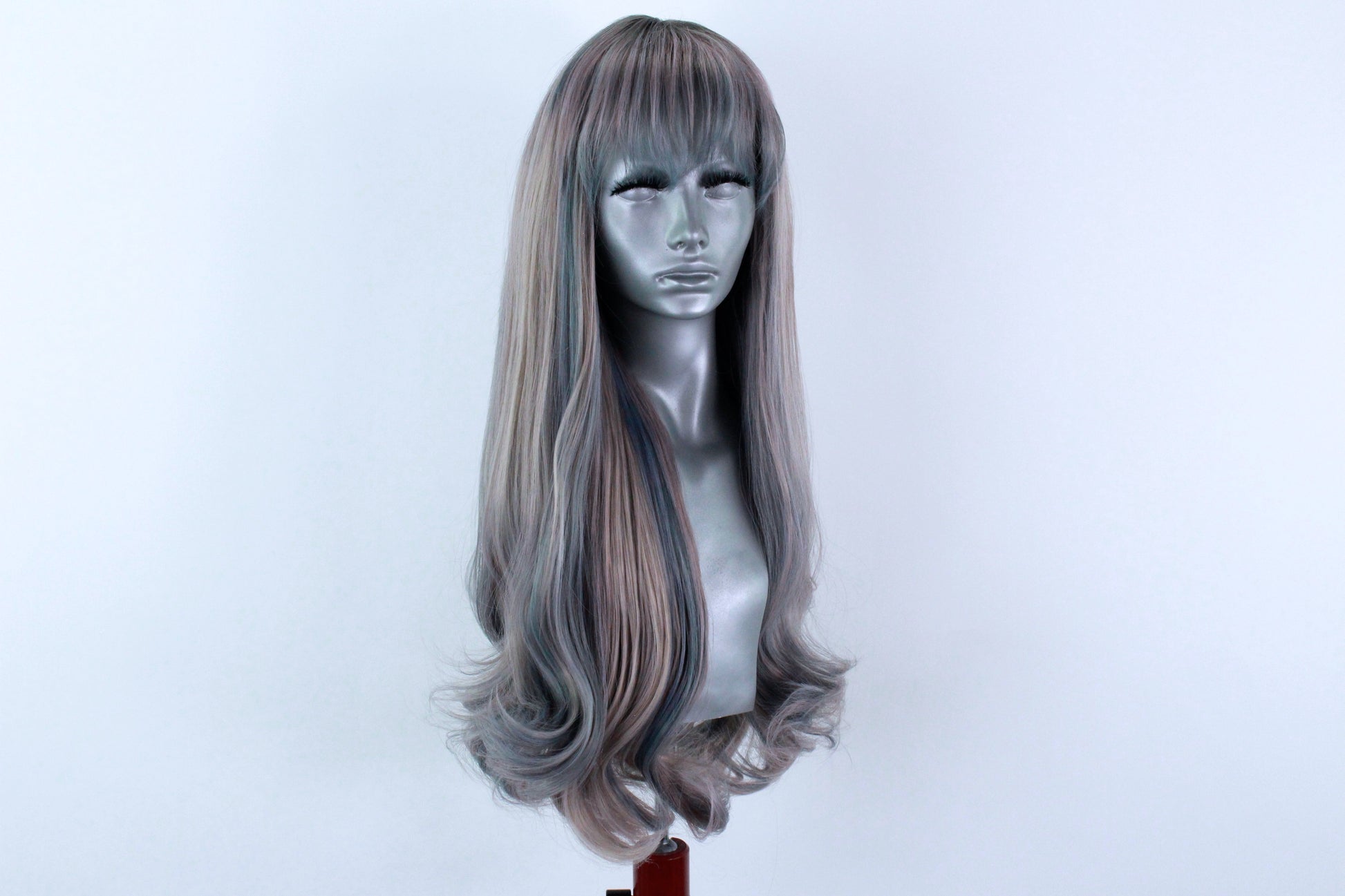 She is a non lacefront wig with a wispy fringe and a skin top parting at the crown for a more realistic looking part.
