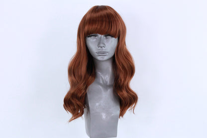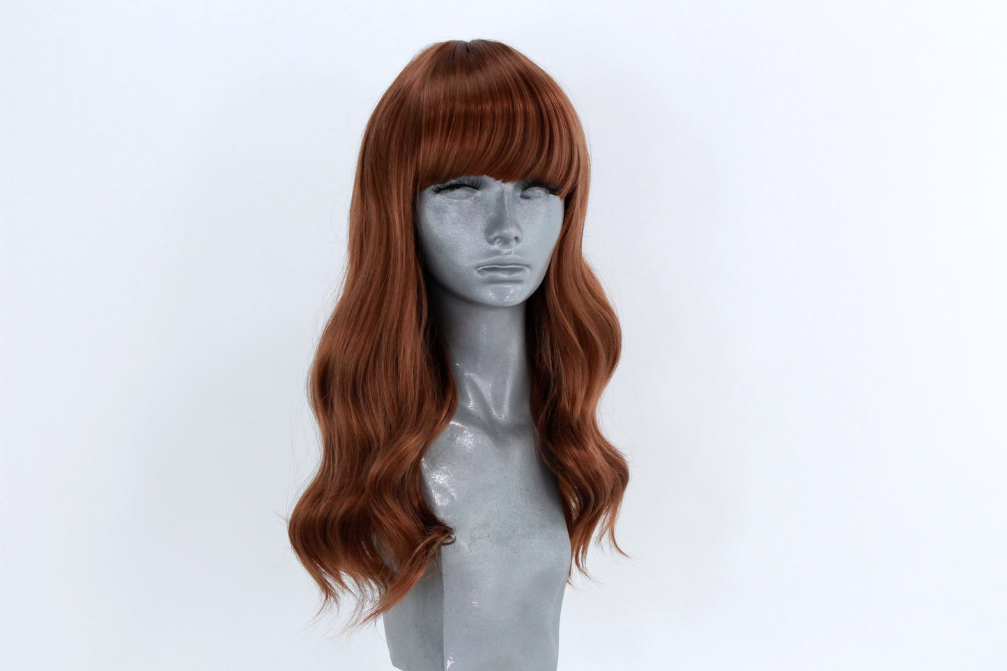 She is a non lacefront wig with a blunt cut fringe and a skin top parting at the crown for a more realistic looking part.