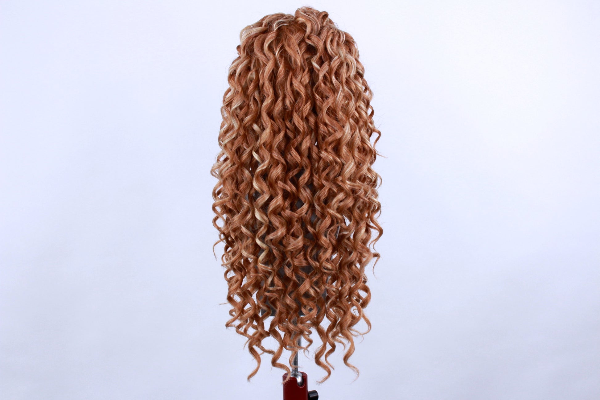 She is made from a high quality heat safe synthetic fibre meaning you can use heat tools up to 170c degrees to curl or straighten her.