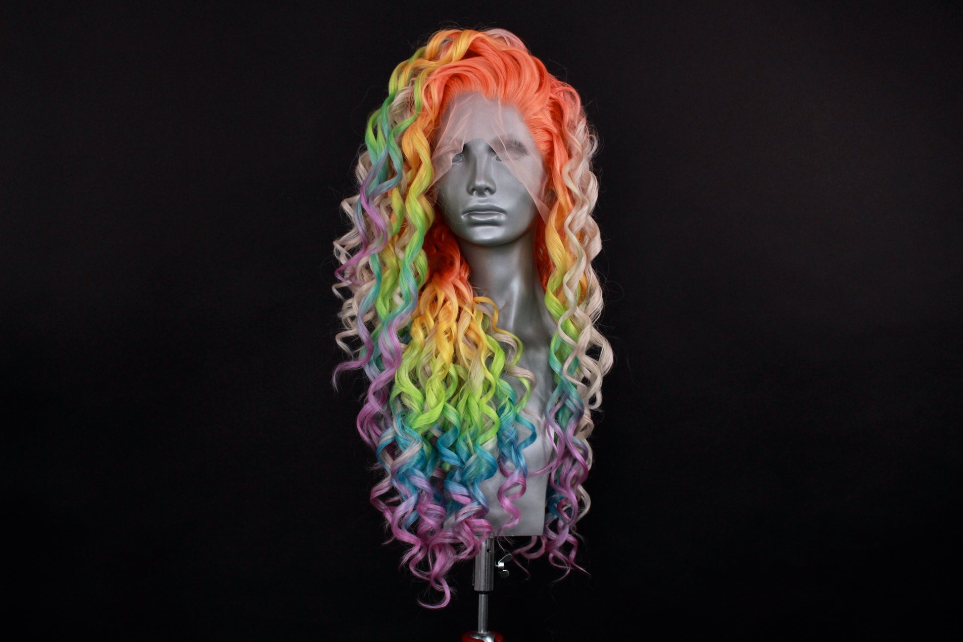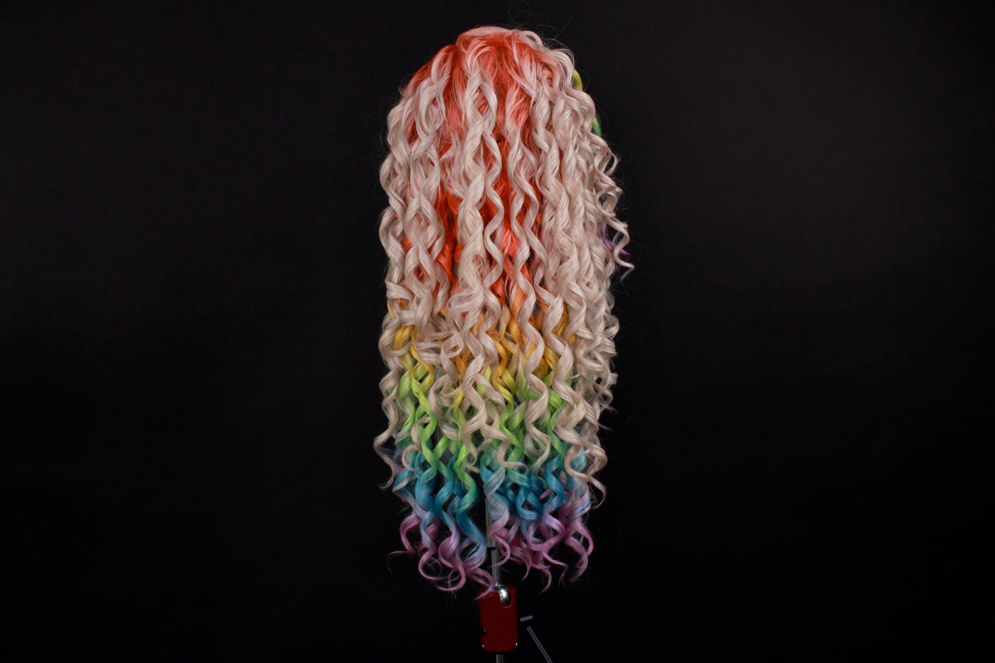 The colour is - A Pearlescent Blonde base with a Rainbow ombré front edge