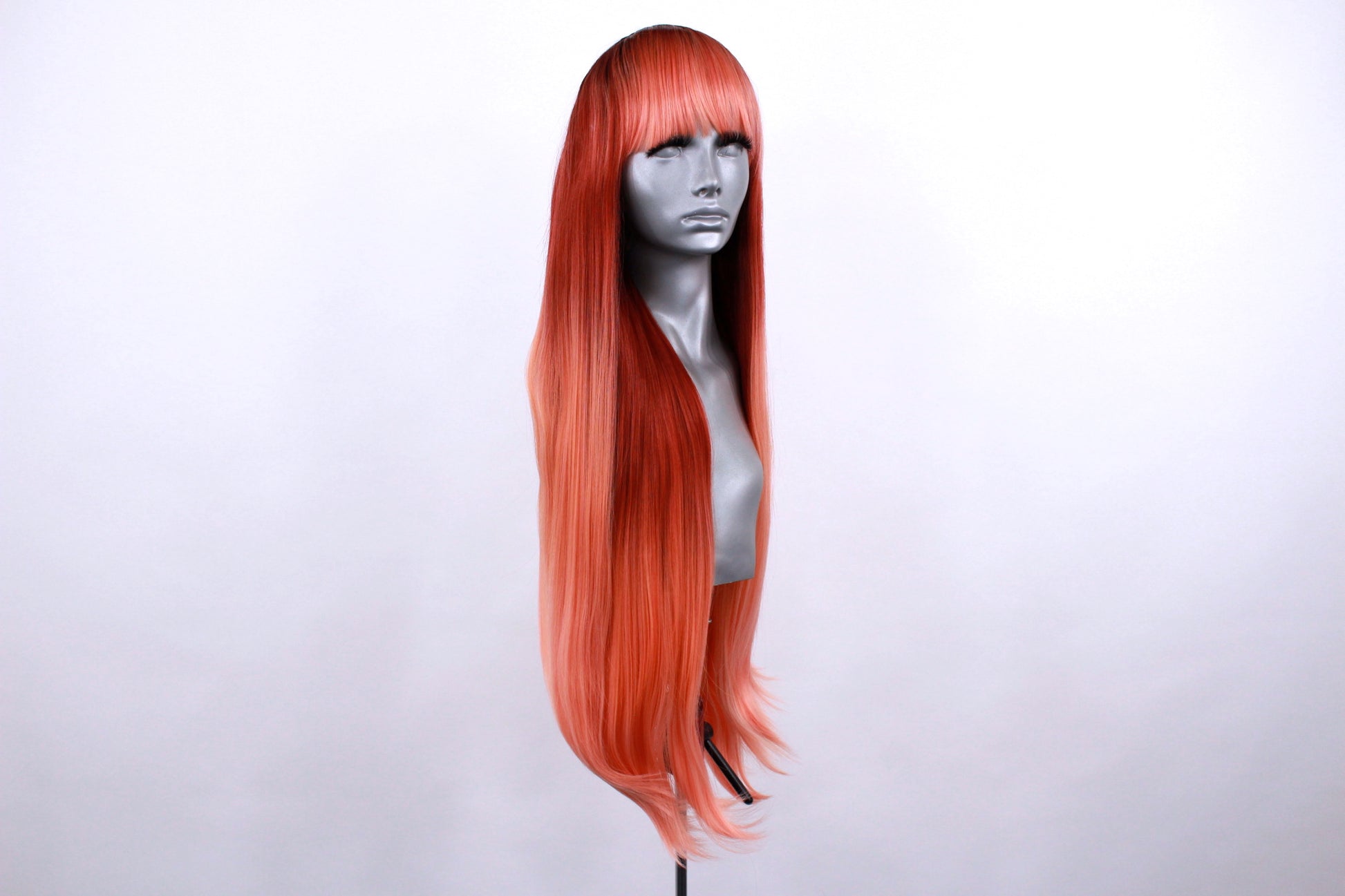 She is a non lacefront wig with a blunt cut fringe and a skin top parting at the crown for a more realistic looking part.