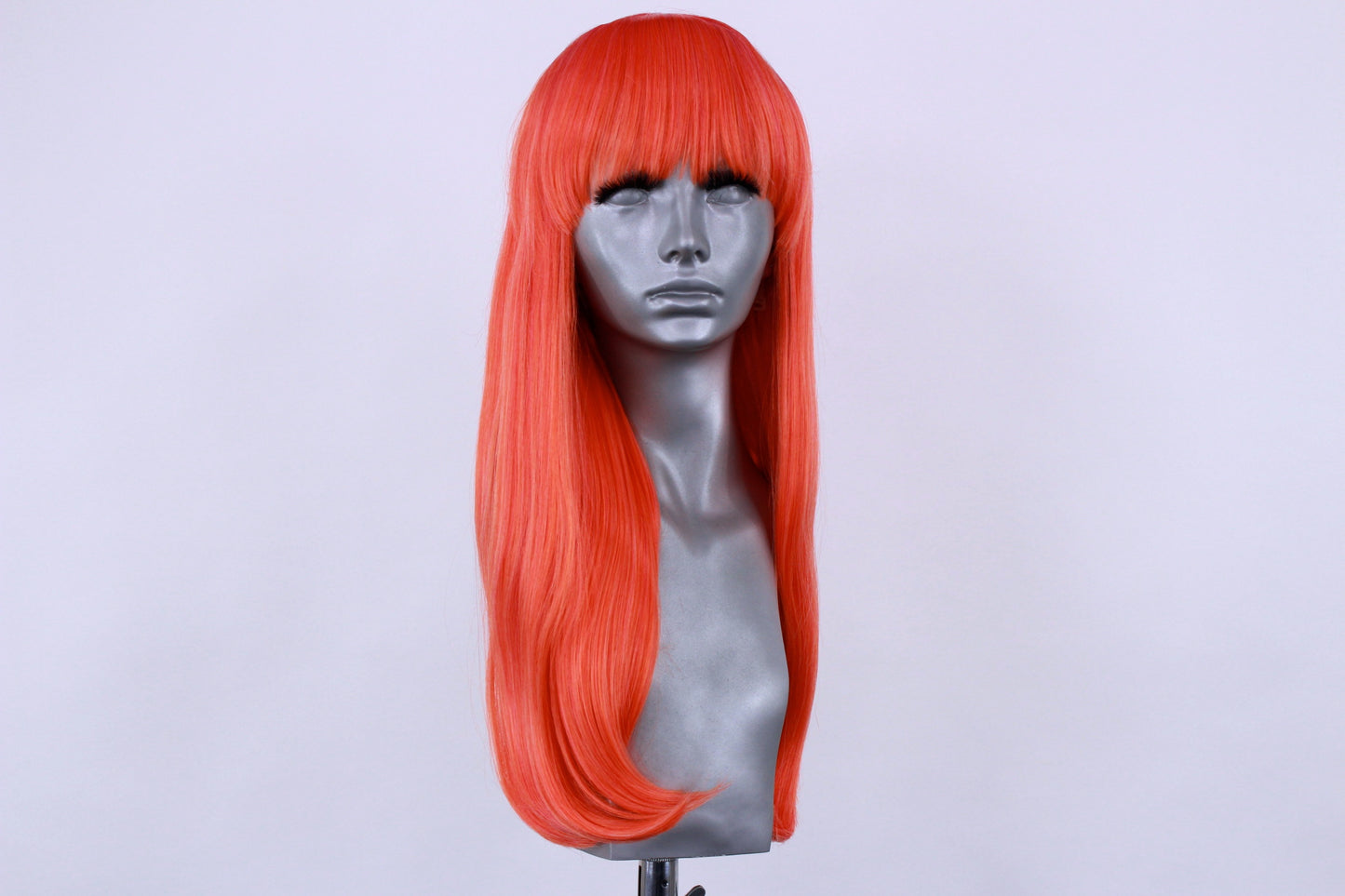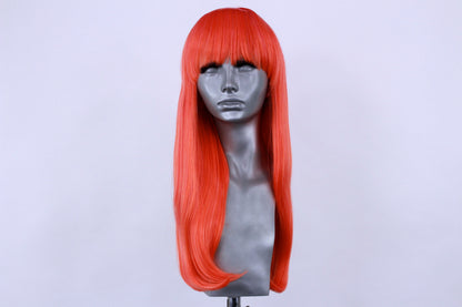 She is a non lacefront wig with a blunt cut fringe and a skin top parting at the crown for a more realistic looking part.
