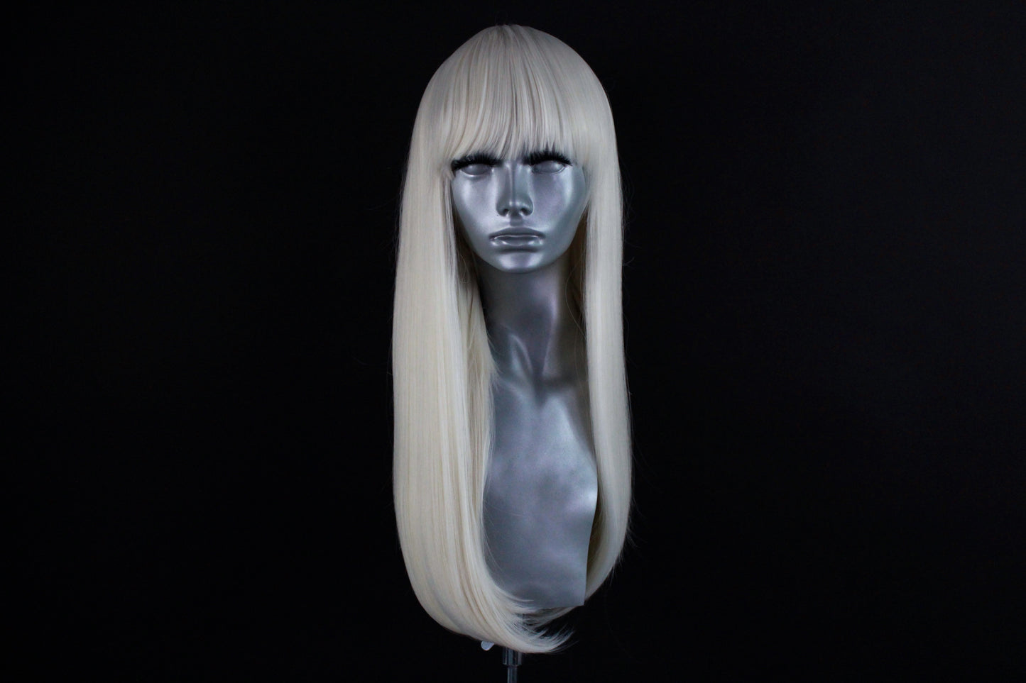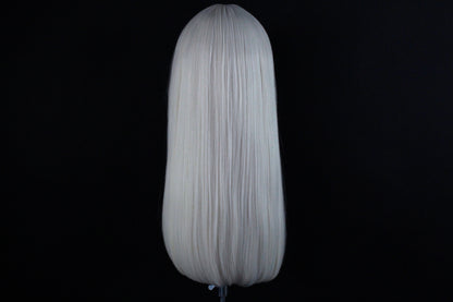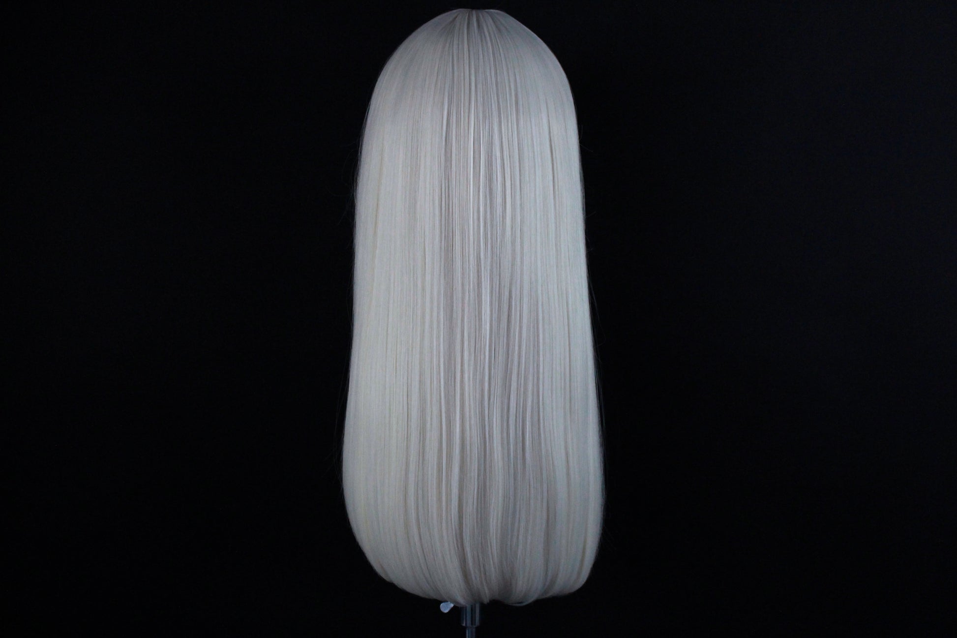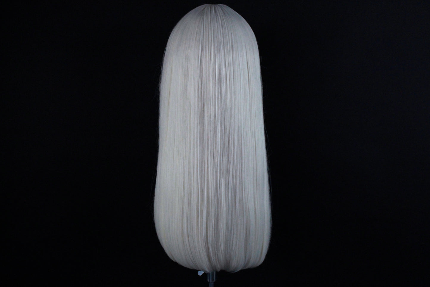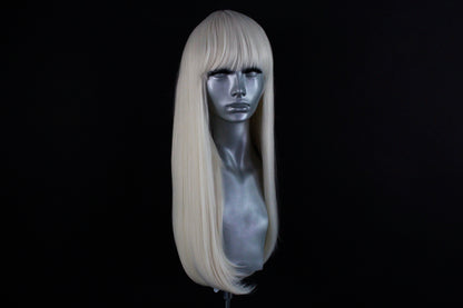 She is a non lacefront wig with a blunt cut fringe and a skin top parting at the crown for a more realistic looking part.