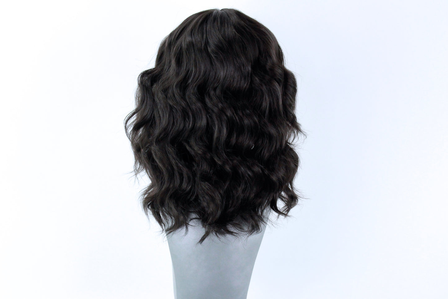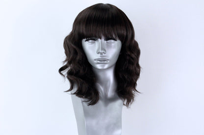 She is a non lacefront wig with a blunt cut fringe and a skin top parting at the crown for a more realistic looking part.