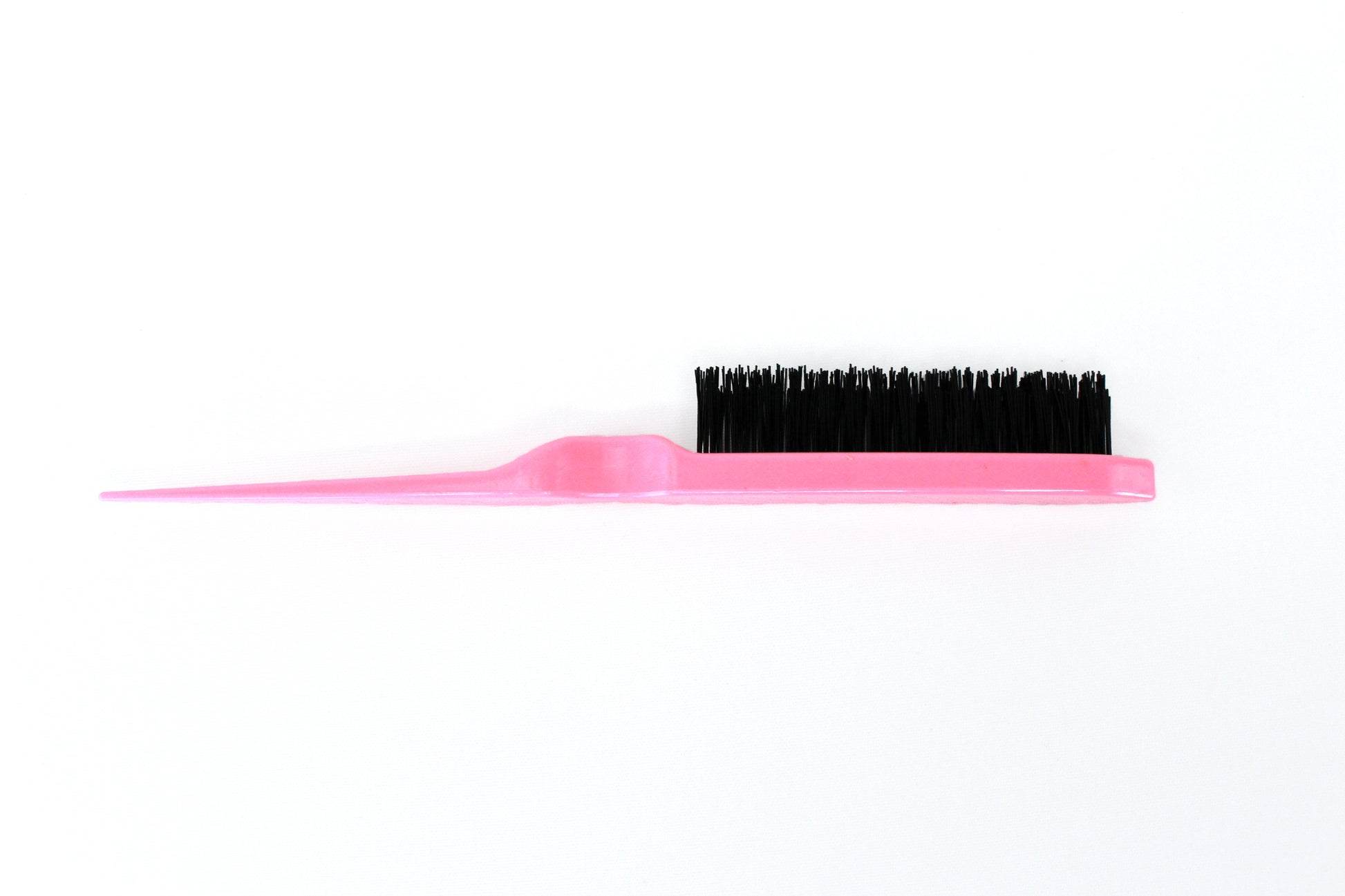 It is made with soft plastic bristles and a hard plastic handle, moulded into a point which makes parting hair an ease!