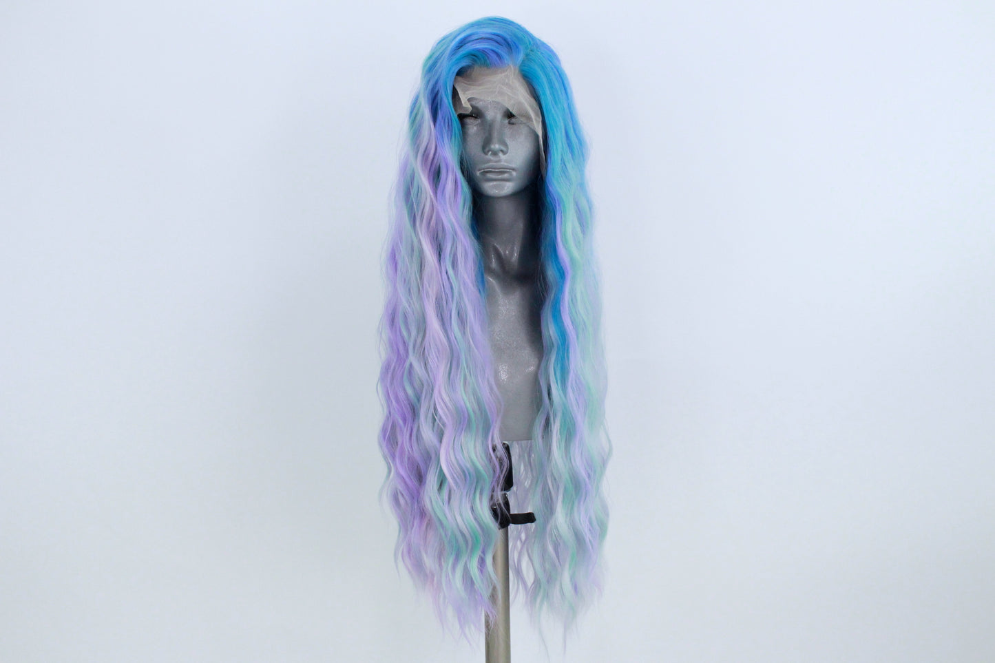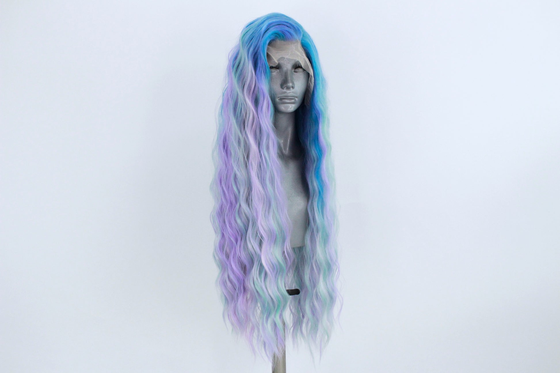 The colour is - A Blue, Mint Green & Pastel Lavender/ Pink Streaked Blend